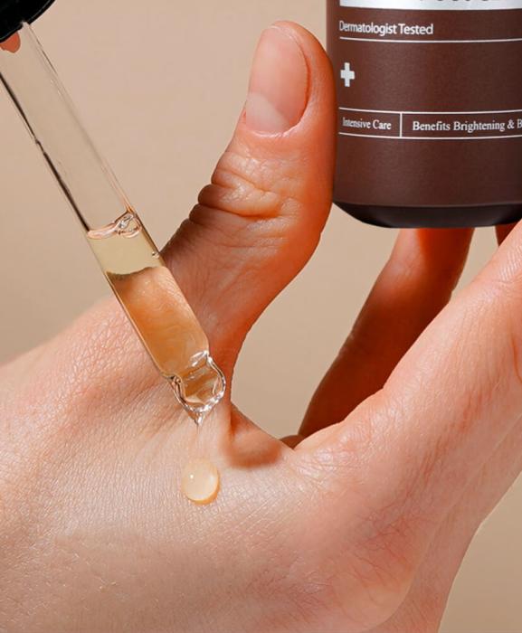 Công dụng: Huyết thanh đậm đặc với 30% vitamin C nguyên chất giúp làn da rạng rỡ và tràn đầy sức sống, cải thiện các tình trạng da bị xỉn màu. Cùng Panthenol có trong hỗn hợp sẽ làm cho làn da trở nên dịu nhẹ, giúp cho làn da được thư giãn và chống viêm.